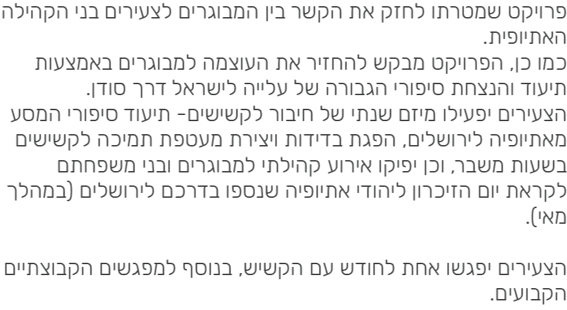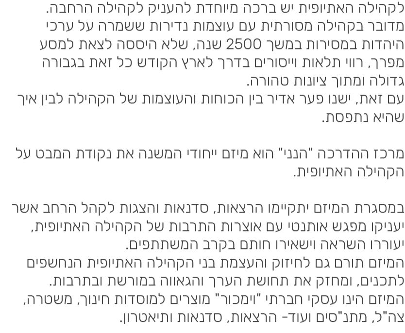 שם המיזם: מרכז הדרכה למורשת יהדות אתיופיה